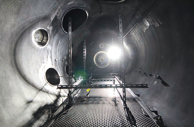 Weight of the main chamber is about 10 tons.