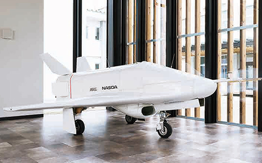 An experimental aircraft actually used in high-speed flight demonstrations is displayed in the main entrance. This demonstration was performed by the former National Space Development Agency (NASDA*) and the former National Aerospace Laboratory (NAL*) (*: currently JAXA).