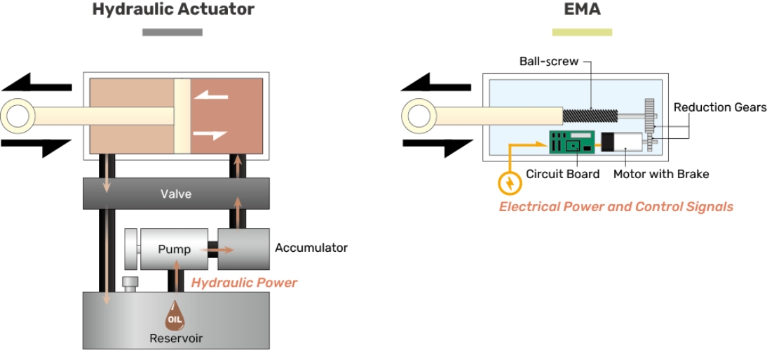 | Hydraulic Actuator | Electro Mechanical Actuator (EMA) | |