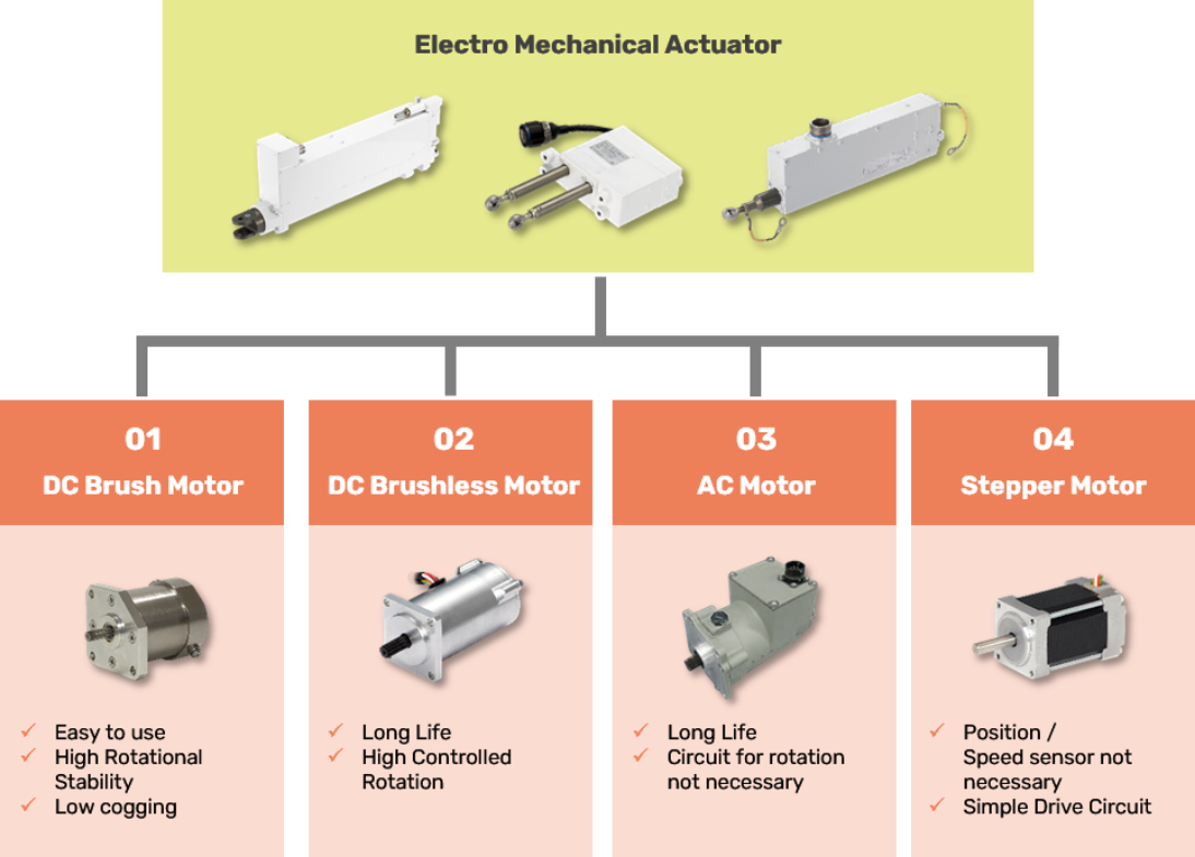 Including these kinds of Motors, the structure / configuration of EMAs have been upgraded to satisfy various kinds of requirements.